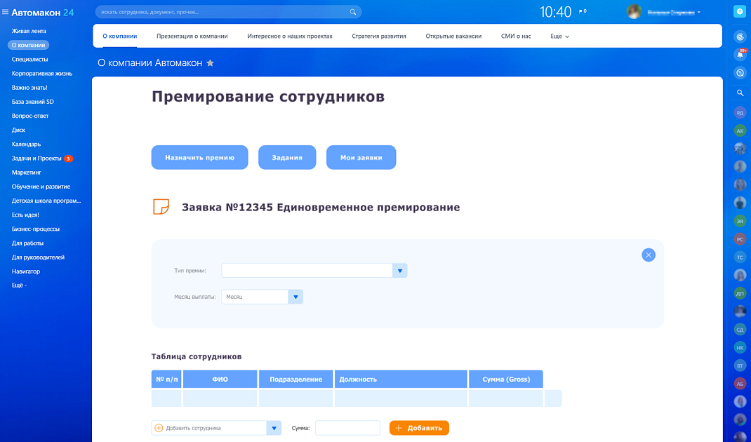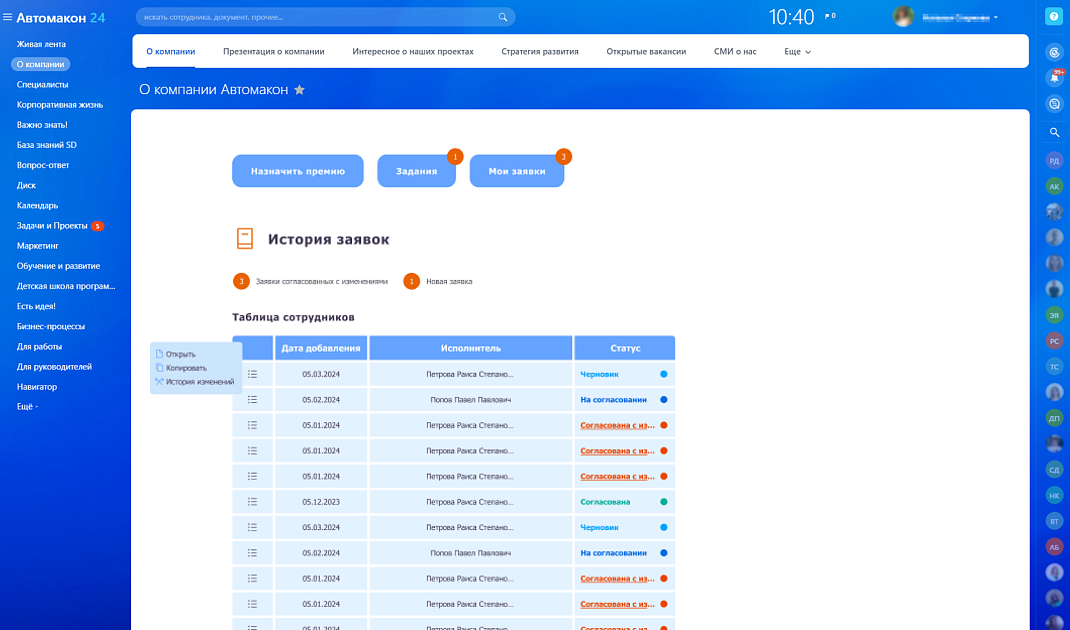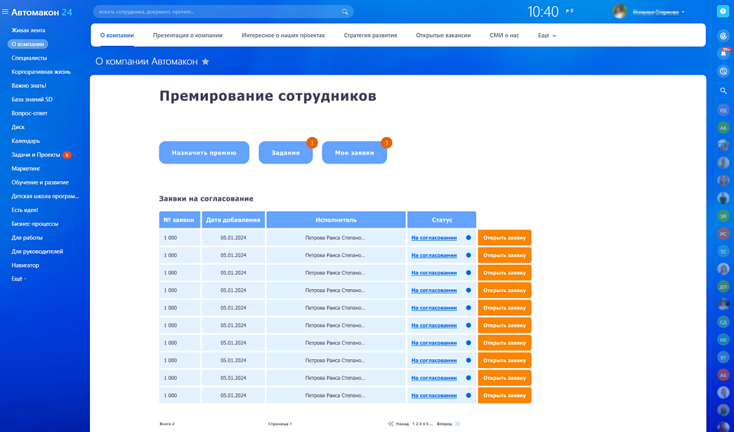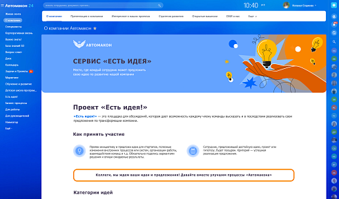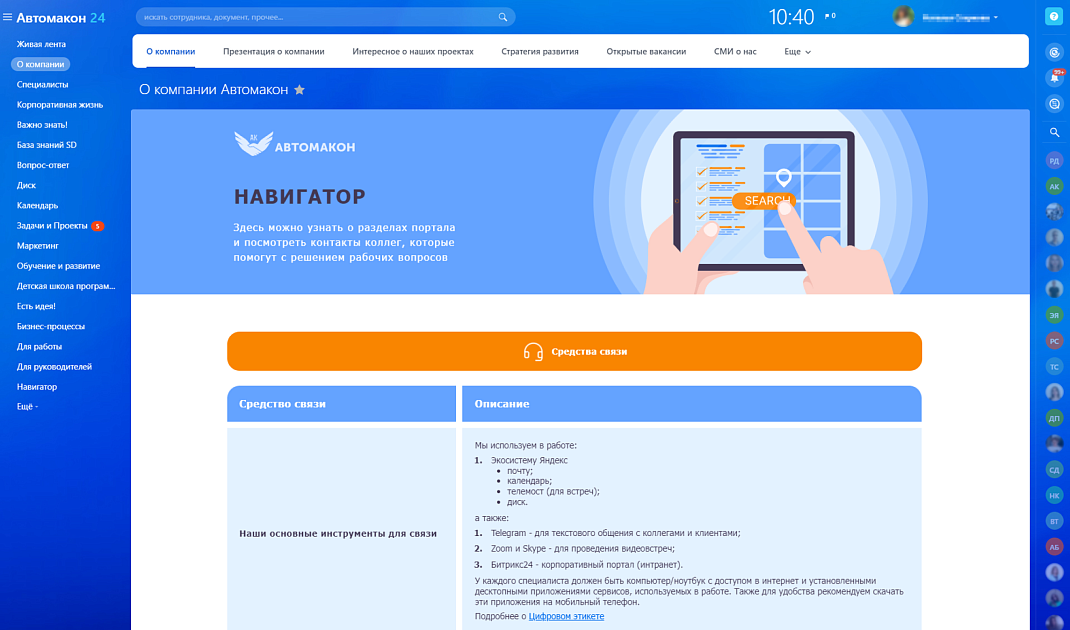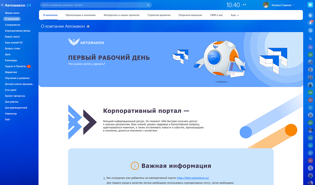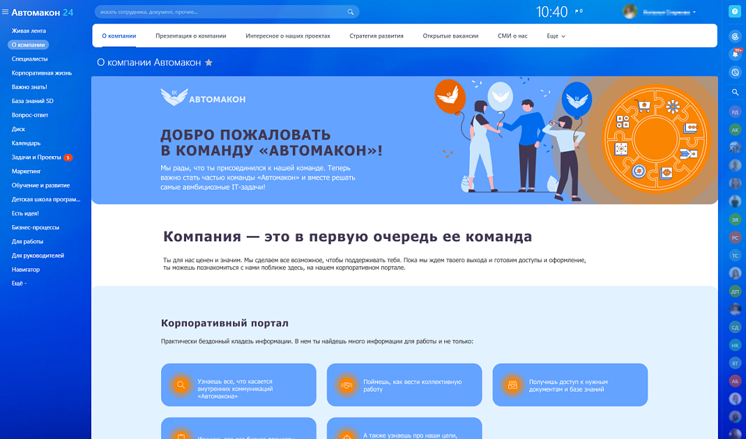- Единый корпоративный портал с лентой новостей и оргструктурой.